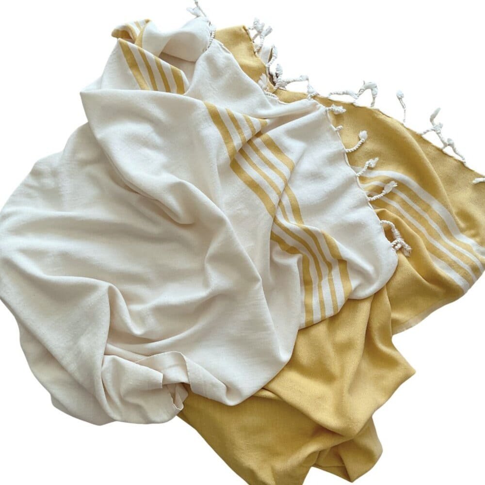 Ieškote rankšluosčių rinkinio, kuris ne tik būtų praktiškas, bet ir įneštų daugiau šviesos bei pozityvios nuotaikos į jūsų kasdienybę? Dviejų rankšluosčių rinkinys „Duo“ – baltos ir geltonos spalvų derinys – tai išskirtinis pasirinkimas tiems, kurie mėgsta lengvumą, natūralumą ir jaukumą. Šis komplektas puikiai tinka tiek paplūdimiui, tiek kelionėms, saunai, SPA, ar tiesiog kasdieniam naudojimui namuose.