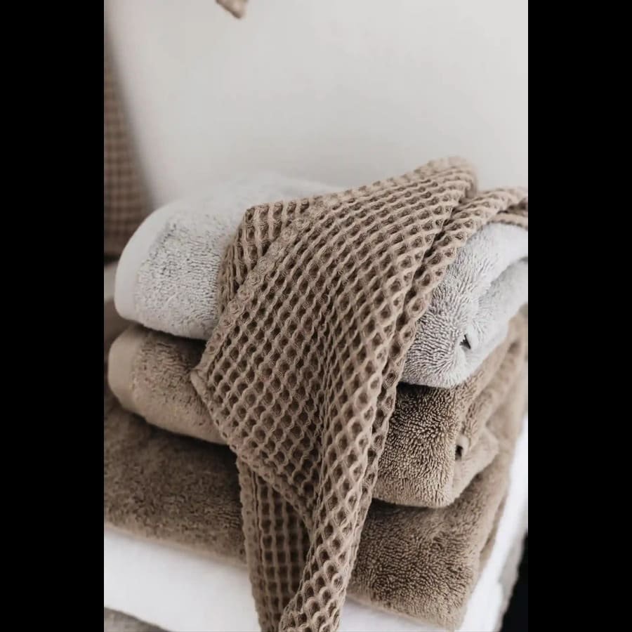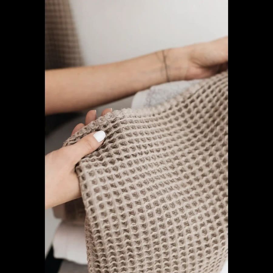 Vaflinis audimas suteikia rankšluosčiui išskirtinę tekstūrą. Ji ne tik atrodo stilingai, bet ir padeda odai jaustis gaiviai – švelnus paviršius primena lengvą masažą, pagerina kraujotaką ir sukuria SPA pojūtį. Be to, tokia struktūra leidžia rankšluosčiui greičiau išdžiūti, todėl jis visuomet pasiruošęs naudoti.