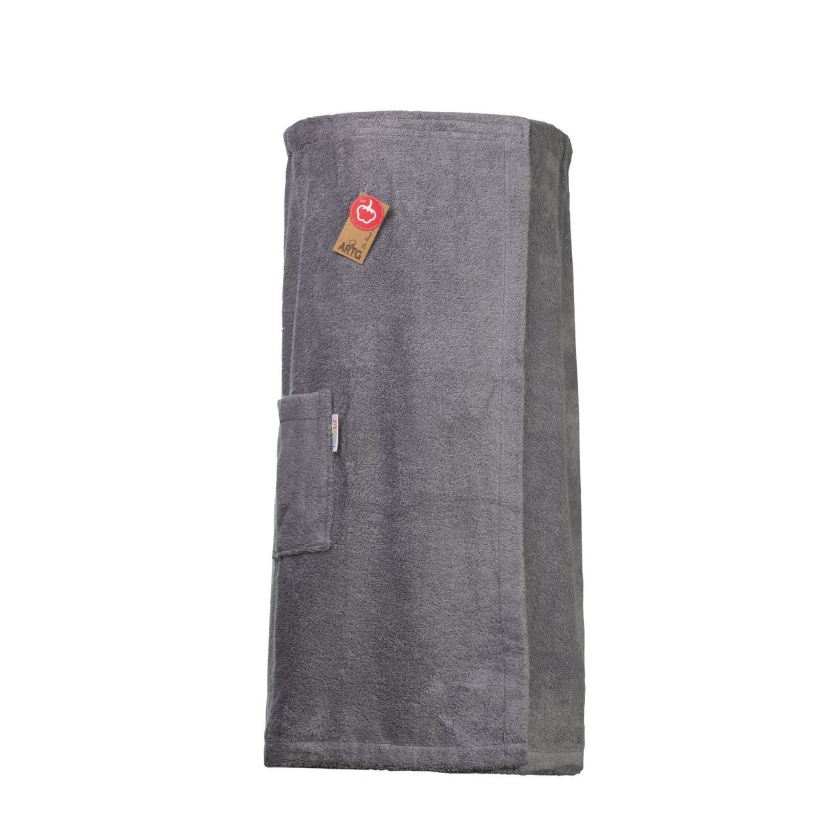 Pilka moteriška pirties suknelė „Towelzz® Sauna Kilt“ – iš natūralios medvilnės, su elastinga juosta, „Velcro“ užsegimu ir kišene. Sugeriančiam, greitai džiūstančiam komfortui kasdien. Dydis: 85 × 150 cm