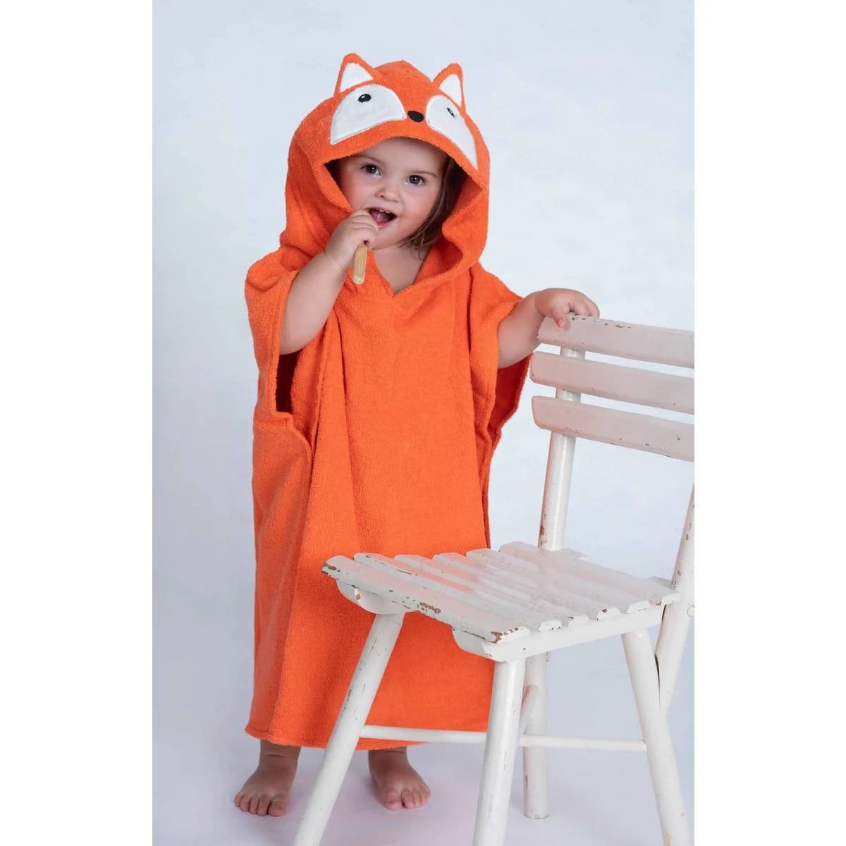 Vaikiškas pončas „Lapė“ iš Fürnis, pagamintas iš GOTS sertifikuotos ekologiškos medvilnės. Tinka vaikams nuo 2 iki 6 metų, švelnus, patogus, nevaržo judesių, pagamintas ES, be kenksmingų medžiagų. Šiltas ir žaismingas pasirinkimas po maudynių.