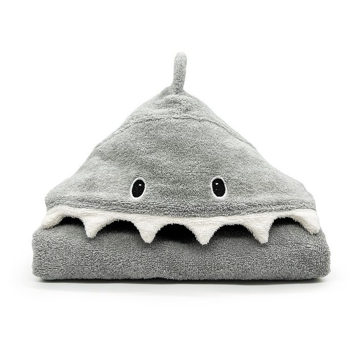 Ekologiškas vaikiškas vonios pončas „Ryklys“ – pagamintas iš 100 % GOTS sertifikuotos medvilnės, švelnus, kvėpuojantis ir puikiai sugeriantis drėgmę. Linksmas rykliuko dizainas pavers džiovinimąsi žaidimu.