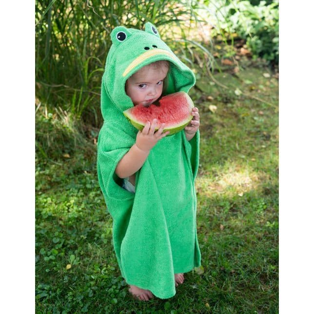 Kiekvienas vaikas svajoja apie mylimą daiktą, kuris būtų ir švelnus, ir smagus. „Varlė“ pončas turi žaismingą kapišoną su varlės akytėmis, ausytėmis bei mielu snukučiu, kuris padeda mažiesiems virsti į personažą ir sukuria žaidimo nuotaiką net po maudynių.
