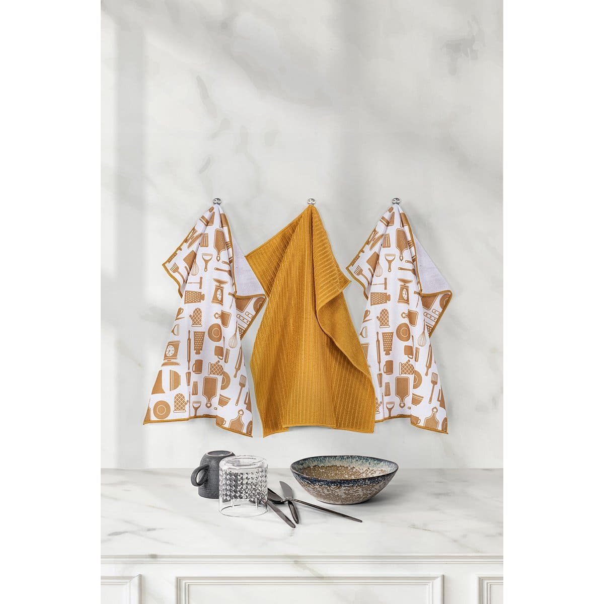 Geltonas virtuvinių mikropluošto rankšluosčių rinkinys „Essentials“ (3 vnt., 40×48 cm) – tai ne tik praktiška, bet ir estetiška detalė jūsų virtuvei. Ryški ir šilta geltona spalva suteikia interjerui gyvybingumo, o išskirtiniai raštai bei tekstūros sukuria subtilų dizaino akcentą. Šis rinkinys puikiai dera tiek modernioje, tiek klasikinėje virtuvėje ir iškart patraukia dėmesį.