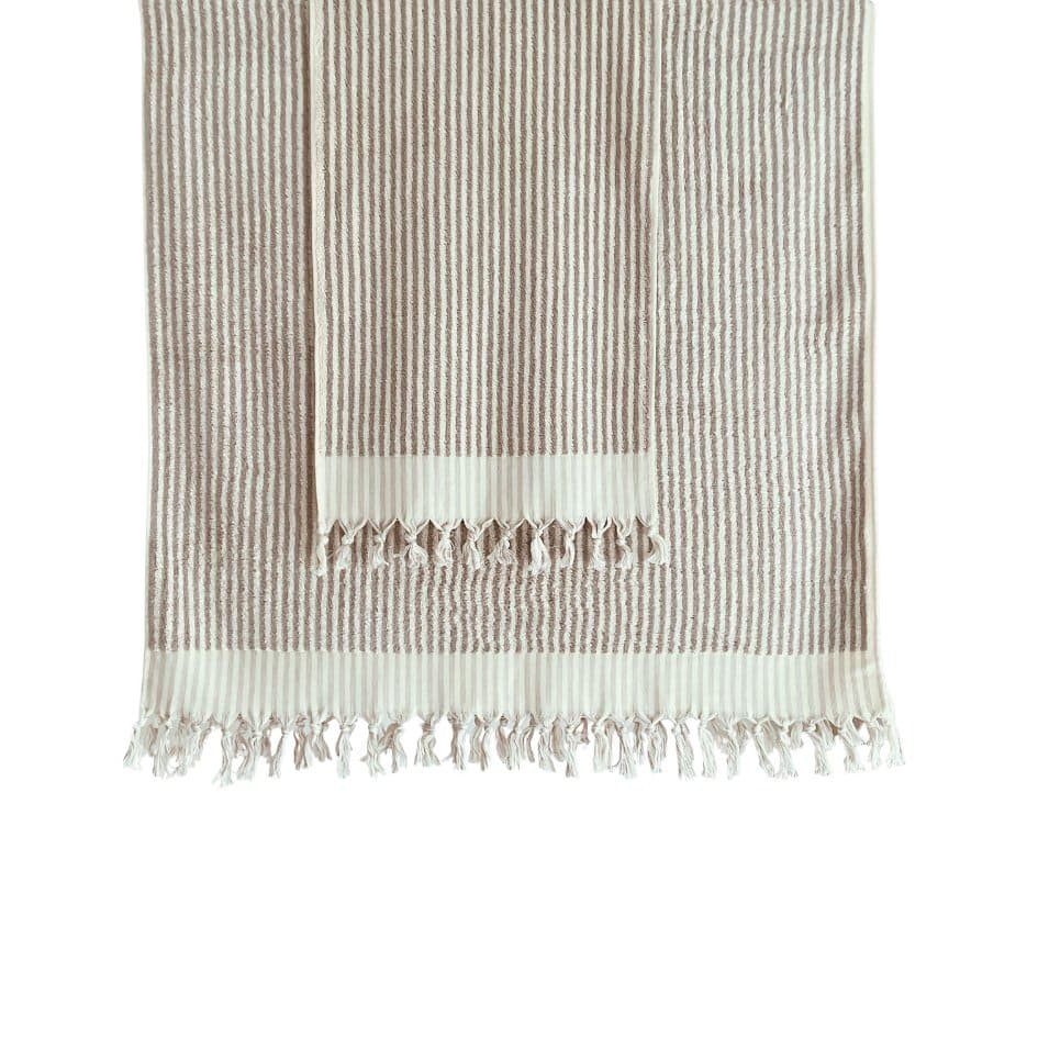 • 45 × 90 cm (~200 g) – mažesnis, patogus kelionėms ar kasdieniam naudojimui kaip rankų rankšluostis.